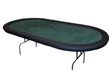 This is a full size, 98" x 57", 10 man Texas Hold 'Em poker table. It features a 5" seamless padded rail, a larger playing surface without the racetrack, and a very sleek and highly durable felt playing surface that is featured in many casinos throughout the country. It features a folding leg base that will facilitate easy storage for part time use. Weighing over 160 lbs this table allows a small budget to still play poker in style!