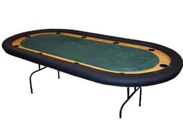 This is a full size, 98" x 57", 10 man Texas Hold 'Em poker table. It features a 5" seamless padded rail, a beautiful 6" stained wood racetrack with built-in cupholders, and a very sleek and highly durable felt playing surface that is featured in many casinos throughout the country. It features a folding leg base that will facilitate easy storage for part time use. This table weighs over 160 lbs and features a price that has quickly made it our number 1 seller!